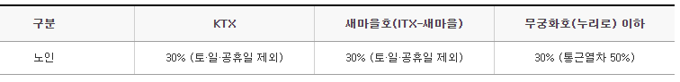 KTX뿐만 아니라 새마을호, 무궁화호도 경로 할인을 받을수 있습니다.